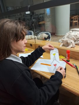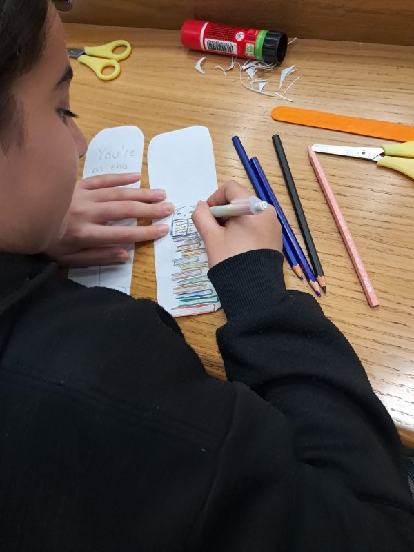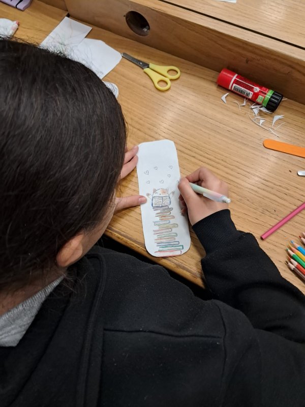 Ziyaret kapsamında öğrencilerimizle birlikte kitap ayracı tasarlama etkinliği gerçekleştirdik. Kendi elleriyle hazırladıkları ayraçlarla kitaplara dokunan öğrencilerimiz, hem üretmenin hem de okuma kültürünün keyfini yaşadı.