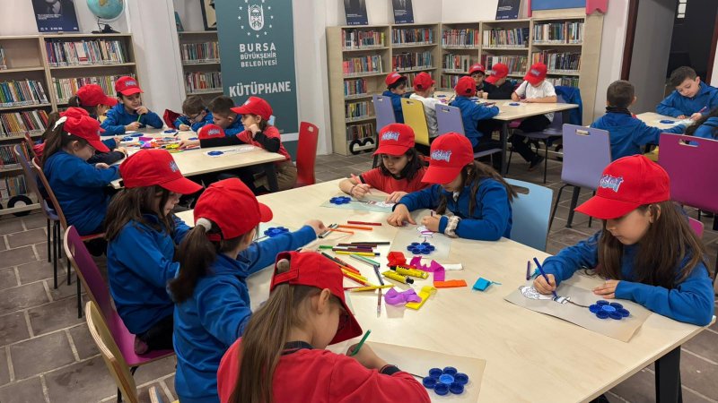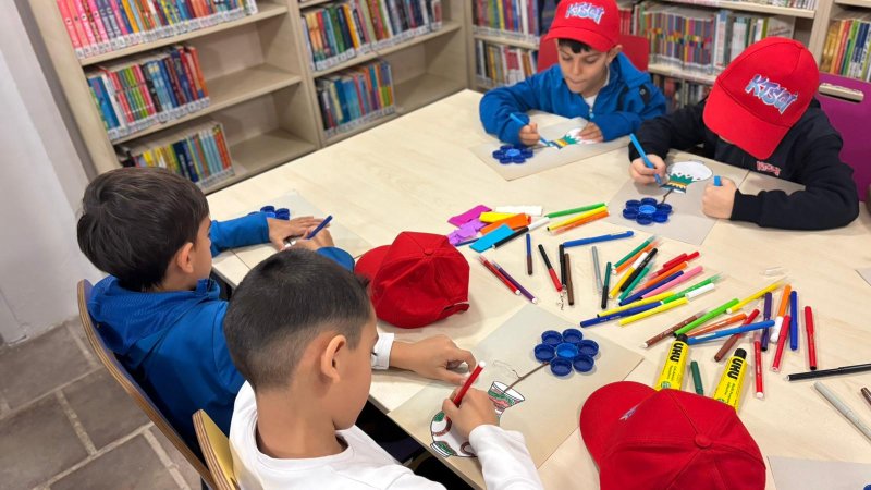 Minik ziyaretçilerimizle önce kütüphanemiz hakkında sohbet ettik, kitapların dünyasına kısa bir yolculuğa çıktık. Ardından atölyemizde, geri dönüşümle neler yapılabileceğini birlikte keşfettik.