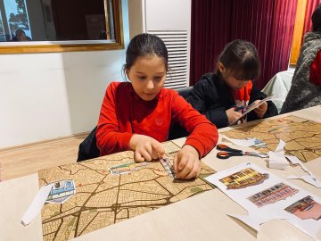 Etkinlik boyunca çocuklarla hem kütüphanemizi tanıdık hem de Bursa’nın önemli kültürel duraklarını konuştuk. Ardından hayal güçlerini devreye sokarak kendi gezi rotalarını oluşturdular; sorular sordular, fikirlerini paylaştılar, keşfetmenin heyecanını yaşadılar.