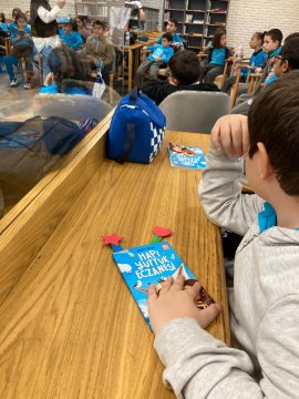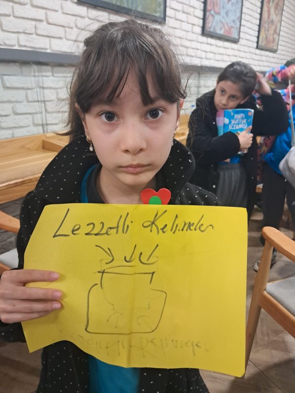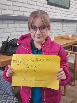 Öğrenciler, kitaptan seçilen bazı kelimeleri değerlendirerek bu kelimelerin kendilerinde uyandırdığı duyguları paylaştılar. Ayrıca daha önce hazırladığımız ayraçları hediye ederek öğrencileri mutlu ettik.