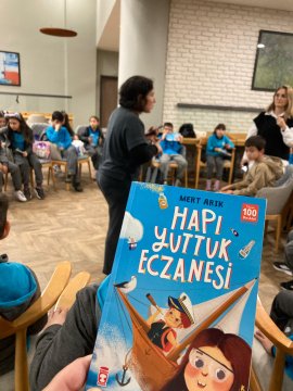 Bugün Atatürk Stadyumu Kütüphanesinde “Hapı Yuttuk Eczanesi” kitabını okuyan ilkokul 3. sınıf öğrencileriyle birlikte kelimelerin bizde uyandırdığı duygular üzerine keyifli bir etkinlik gerçekleştirdik.