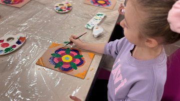 Minik sanatçılarımız ahşap üzerine çizilen desenleri özenle boyayarak hayal güçlerini ve yaratıcılıklarını ortaya koydular.