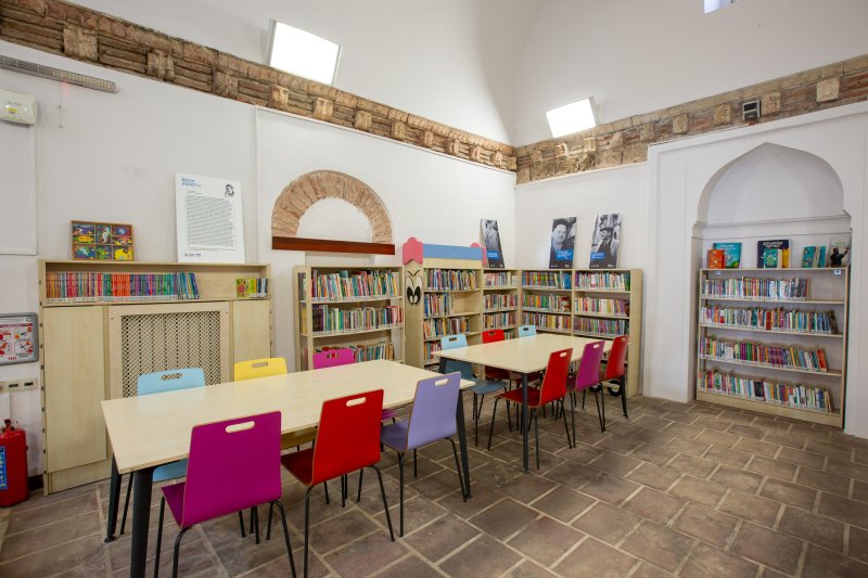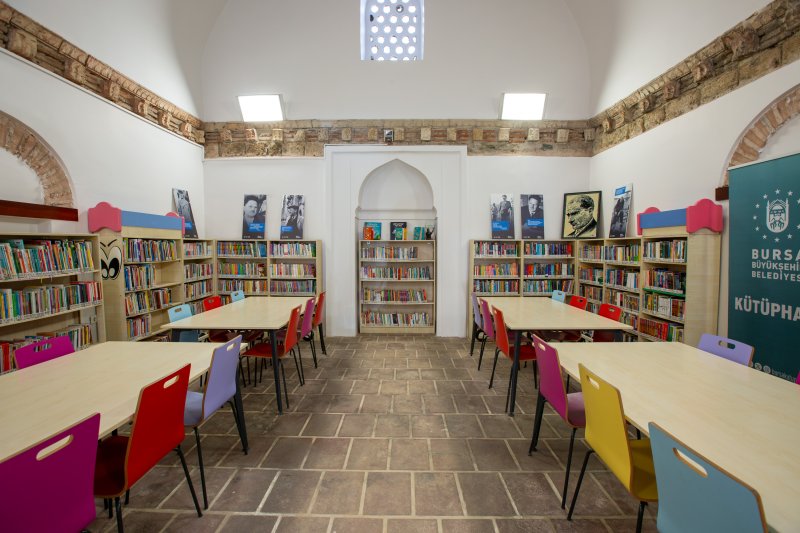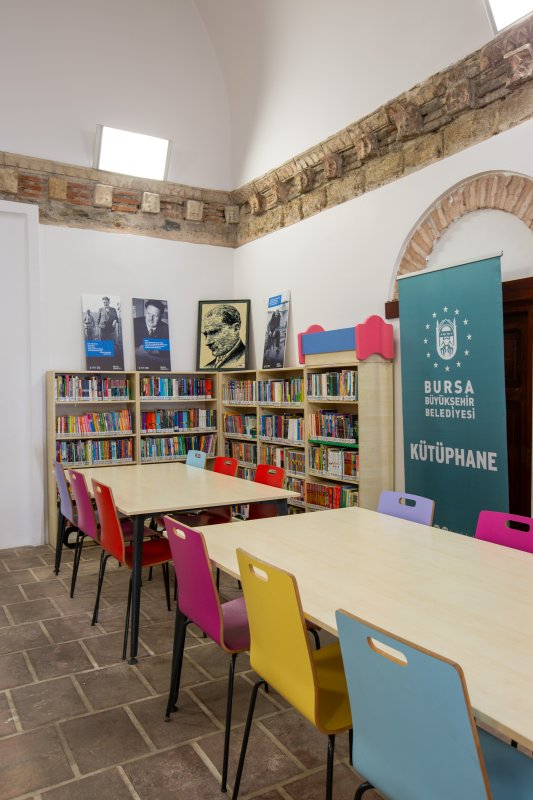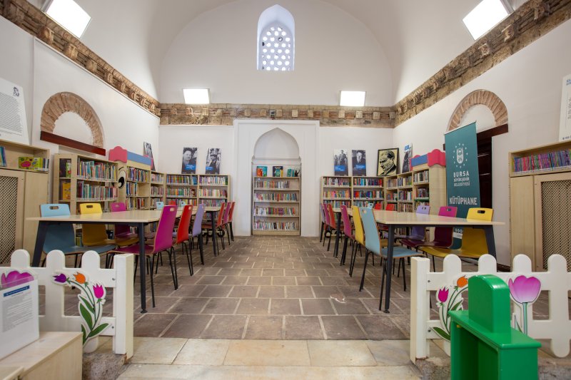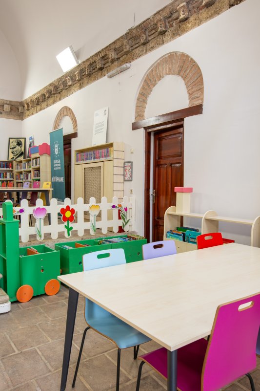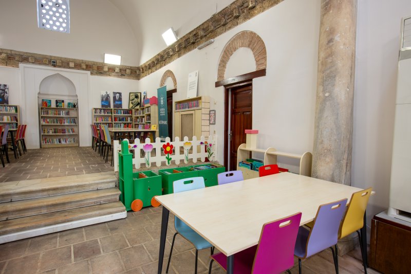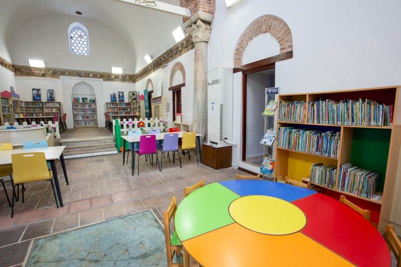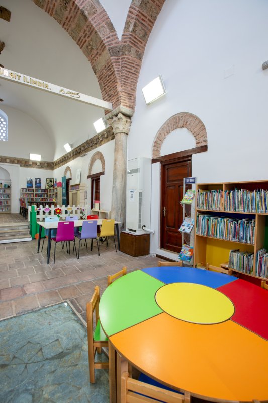 686 yıllık geçmişe sahip kütüphanemiz 2012 yılı itibariyle çocuk kütüphanesi olarak hizmete açılmıştır. Çocuklara kitap okuma alışkanlığını ve kitap sevgisini küçük yaştan itibaren aşılayan eğitici oyunlarla farkındalık geliştirmelerini sağlayan, aynı zamanda eğitici ve bilgilendirici atölyeler, çocuk kitabı yazarları ile gerçekleştirilen söyleşilerle, çocukların öğrenimi destekleyen projelere ev sahipliği yapmaktadır. Kütüphanemizde, 62 kişilik kapasitesi, 1 okuma salonu ve 2 oyun odası bulunmaktadır.