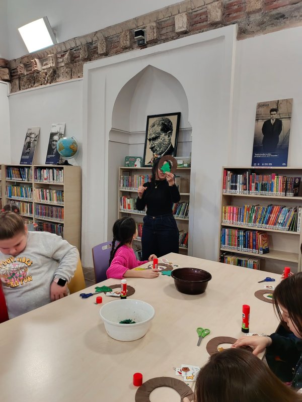 Lala Şahin Paşa Çocuk Kütüphanemizde çocuklarımızla, kütüphanemizin tarihi, kütüphane kuralları ve ödünç kitap sistemi hakkında kısa ve keyifli bir sohbet gerçekleştirdik. Ardından el becerilerini ve hayal güçlerini kullanarak kapı süsü etkinliğimizi yaptık. Paylaşmanın, üretmenin ve birlikte öğrenmenin mutluluğuyla geçen bu buluşma, çok güzel bir atölyeye dönüştü.