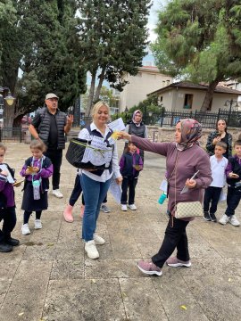 Şükrü Çavuş İlkokulu öğrencileri bugün Hasan Bey Kütüphanesi'nde “Zeynep ve Feza'nın Kütüphane Günlüğü” etkinliğinde boyama yaparak ve okuyarak kütüphane kullanımını ve kurallarını öğrendiler. Ardından Hasan Bey Kütüphanesi'nin müdavimleri olan sokak hayvanlarını -başta “Şeker” olmak üzere- beslediler.