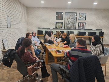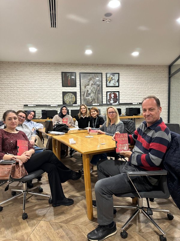 Bugün Kütüphanemizde öğretmenlerin oluşturduğu okuyucu kulübü üyelerini ağırladık. Don Brown'un “Sırların Sırrı” kitabını okuyan öğretmenler, içinden seçtikleri güzel cümleleri notlara yazarak bizimle paylaştılar. Her öğretmen rastgele bir cümle çekip kısa bir yorumda bulundu. Çay eşliğinde eğlenceli vakit geçirildi.