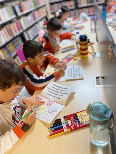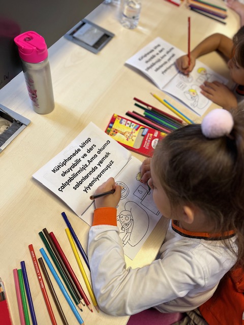 “Zeynep ve Feza’nın Kütüphane Günlüğü” etkinliğinde çocuklarımız hem boyama yaptılar hem de kütüphane kurallarını eğlenerek öğrendiler.