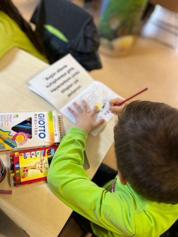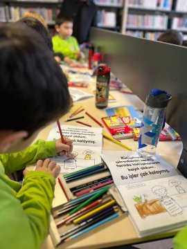 Zeynep ve Feza’nın Kütüphane Günlüğü ile çocuklar hem keyifle boyama yaptı hem de kütüphanede nasıl davranılması gerektiğini öğrendi.