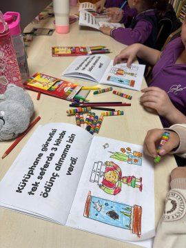 Bugün minik okuyucularımız, Zeynep ve Feza’nın kütüphane macerasını dinleyerek kütüphane kurallarını boyama etkinliğiyle öğrendiler. Hem eğlendiler hem de kitaplara nasıl özen göstereceklerini keşfettiler.