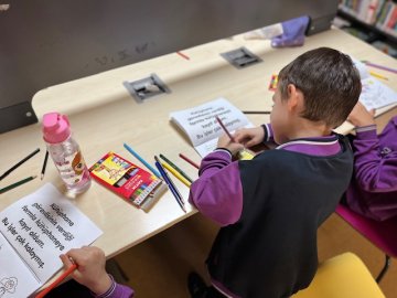 Bugün kütüphanemizde “Zeynep ve Fezanın Kütüphane Günlüğü” adlı keyifli bir boyama etkinliği gerçekleştirdik!